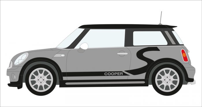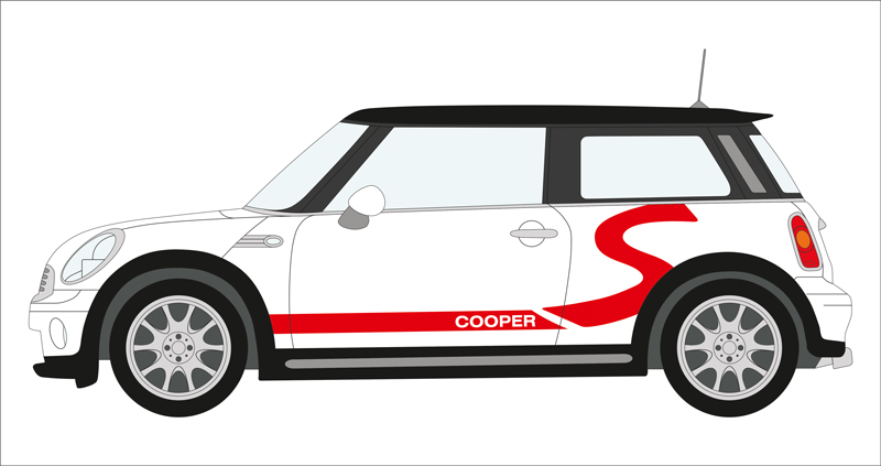 Ένα σετ αποτελούμενο από 2 ρίγες αυτοκόλλητου βινυλίου κατάλληλο για αυτοκίνητα Mini Cooper.